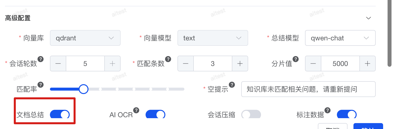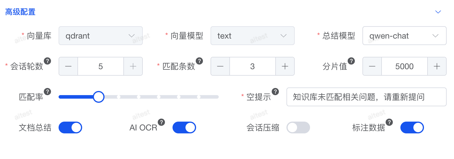 如果你的资料较多,建议将阈值设置在 70% 以上,以减少无关结果,提高检索精准度。