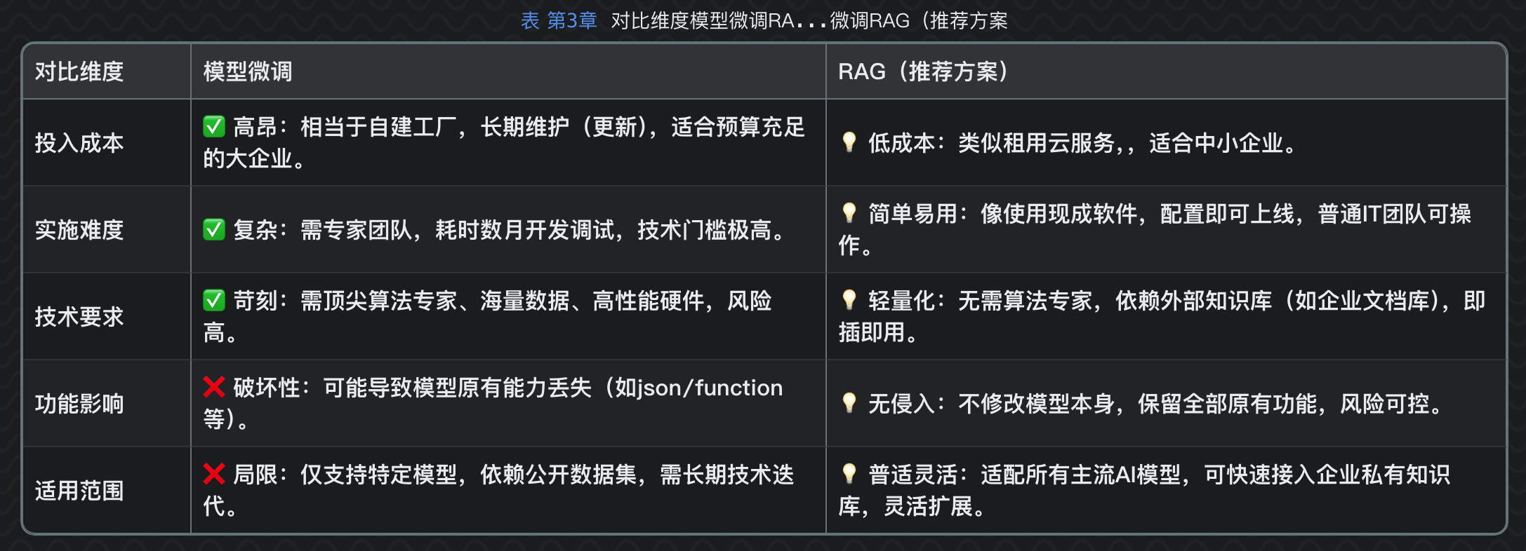 RAG(Retrieval-Augmented Generation,检索增强生成)是一种结合了信息检索(Retrieval)和文本生成(Generation)的人工智能技术。它的核心思想是在生成式 AI(如大语言模型)生成文本之前,先从一个外部知识库中检索相关信息,并将这些信息作为上下文输入给模型,以提高回答的准确性和相关性。所以简单来讲, RAG 不会修改模型自身任何东西还是调用通用大模型,只是通过外挂外部模型,也没有微调的东西