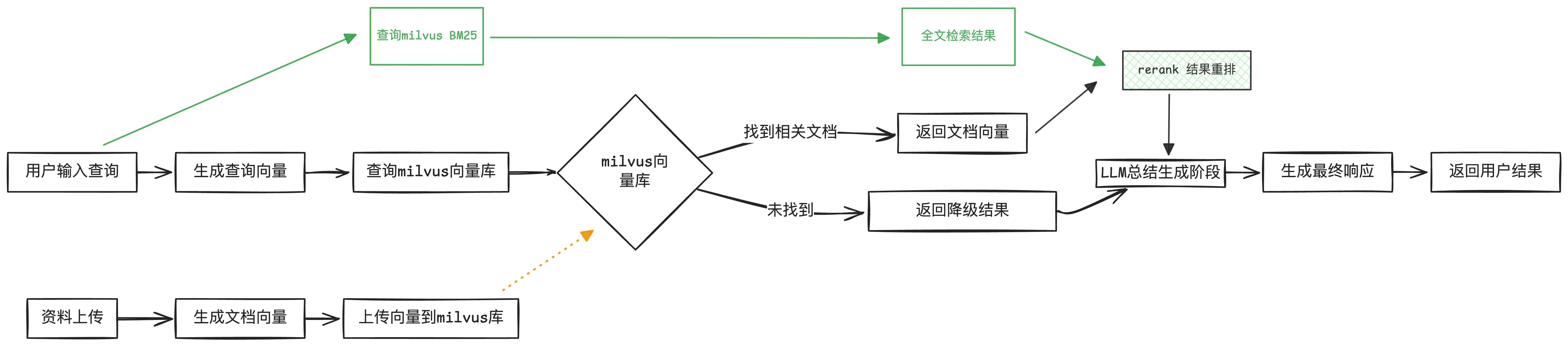 在入门阶段,我们通常使用 docker run qdrant 作为向量库的快速上手方案。但如果你需要更强大的功能,推荐使用 Milvus,虽然它需要更多资源,但功能更强大。可以直接参考官方文档,运行 Milvus 的单机版本:Milvus 单机部署指南。Milvus 的优势:支持向量检索 + 全文检索的混合检索,即先进行向量搜索,再结合全文搜索优化结果,提高搜索的准确性和相关性。